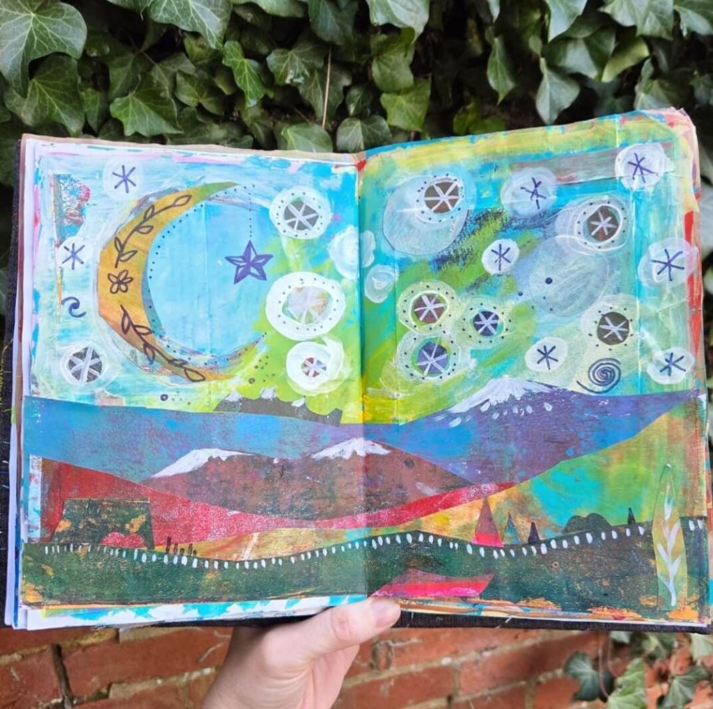 I usually find empty sketchbooks and journals a bit intimidating; I never finish them, or I rip out loads of pages. But working on small sections at a time, with junk paper, felt relaxed and stressful-free instead and I ended up filling up page after page. It’s so good to have a record of my year to look back on. Definitely doing it this way again in 2026!