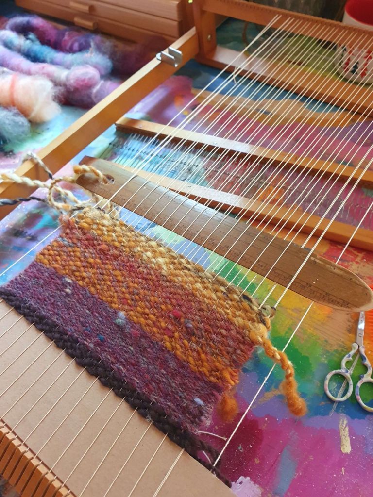 Newly built garden cabin means I have a dedicated space to play and make a mess again after we moved here 8mths ago. So many things I want to do I don’t know where to start. But wool is calling to me at the moment so I’m practising blending and spinning and weaving with the dream of eventually making my own woollen fabric one day.