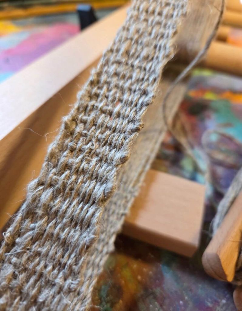 I grew my own fabric! I can’t quite believe I’ve made a belt out off something I grew in my own garden. Eight months of sowing, growing, harvesting, retting, processing, spinning, and weaving and this is the result. I really wanted to turn my first linen yardage into a useful item, so I decided upon weaving a belt on an inkle loom. I got started right away once I’d finished spinning. My yarn was on the chunky side so a thick belt suited it perfectly.