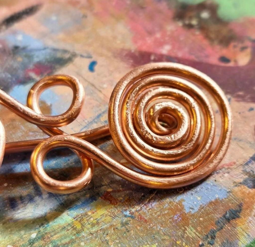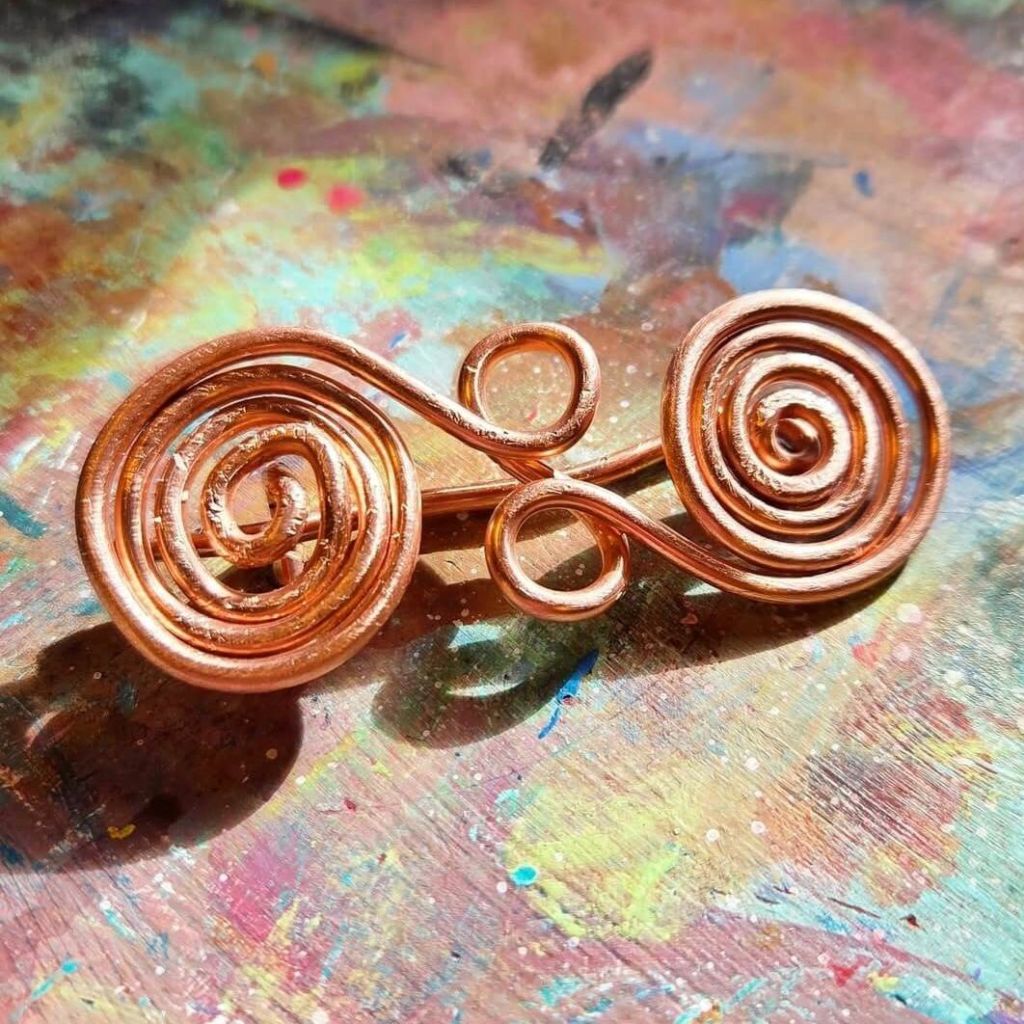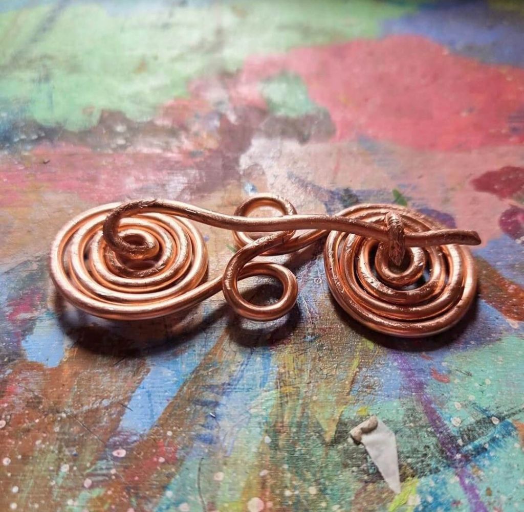 Just had a go at making a copper wire fibula brooch, a project from the book Bog Fashion by Nicole Derushie.