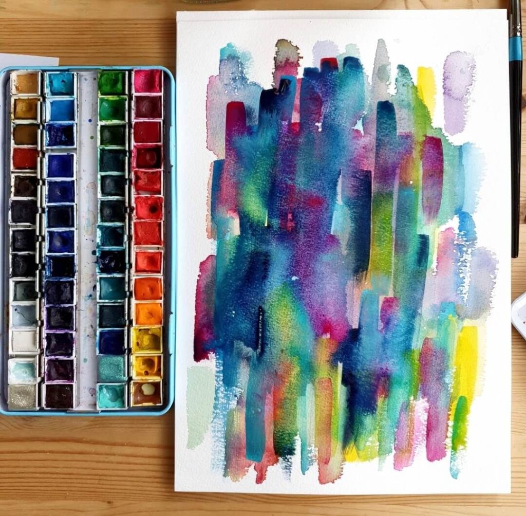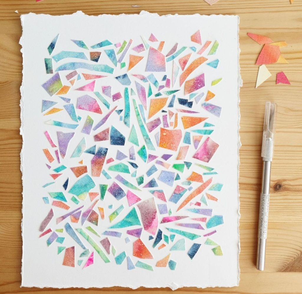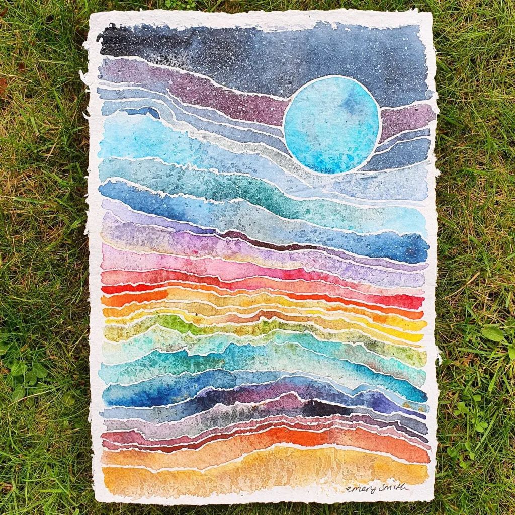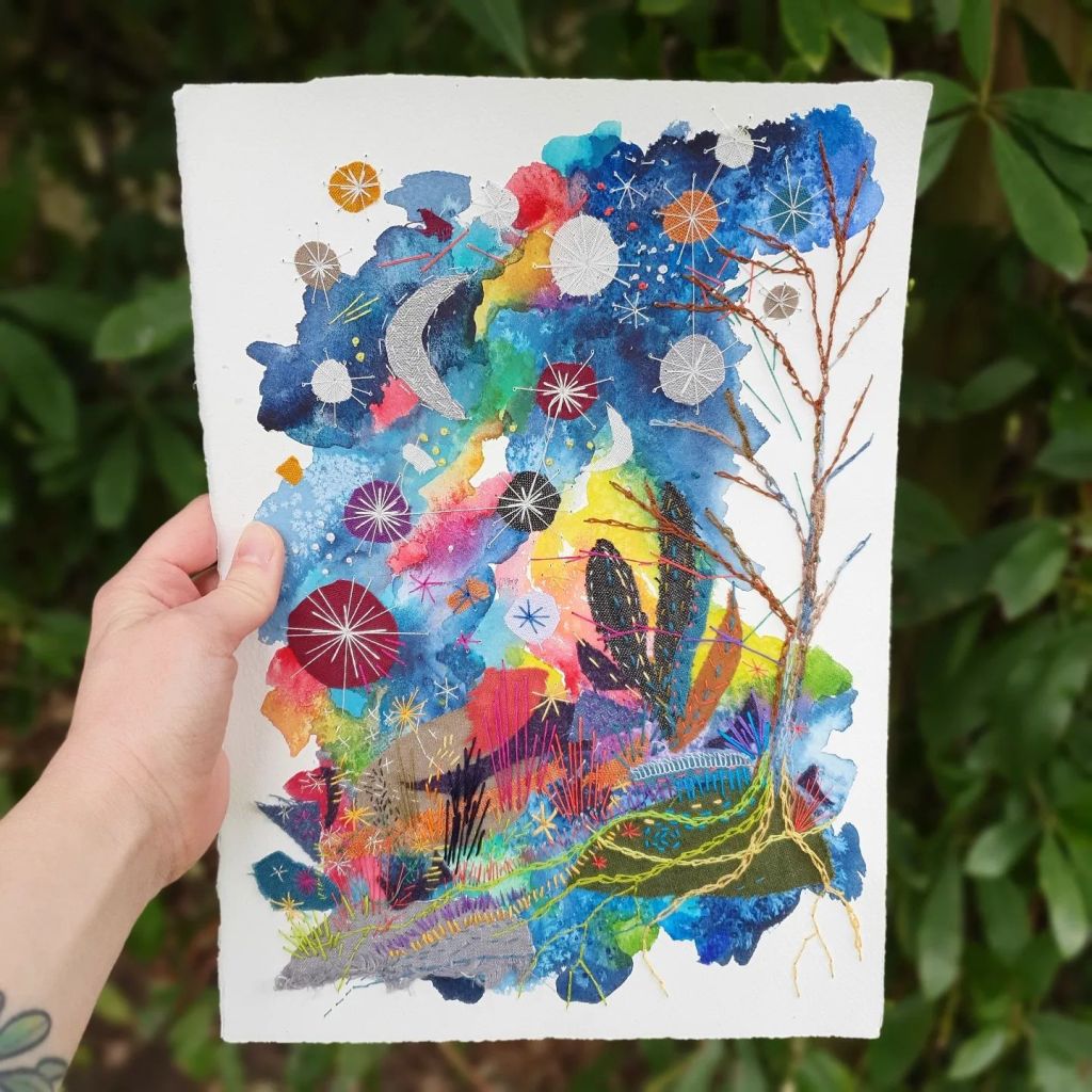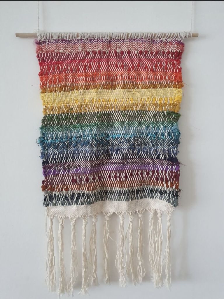 Tools – watercolourTake flight – fabric and embroidery threadBlue moon – watercolour on homemade paperBlock printing in my sketchbookPride Peaks – design for Kula ClothTwinkle Tents – design for Kula ClothIn the night garden – fabric, embroidery threadShattered – collage and watercolourRainbows & Clouds – design for TotsbotsShirt design for Gender Free WorldHit the hut – design for TotsBotsWeaving made using recycled tshirts